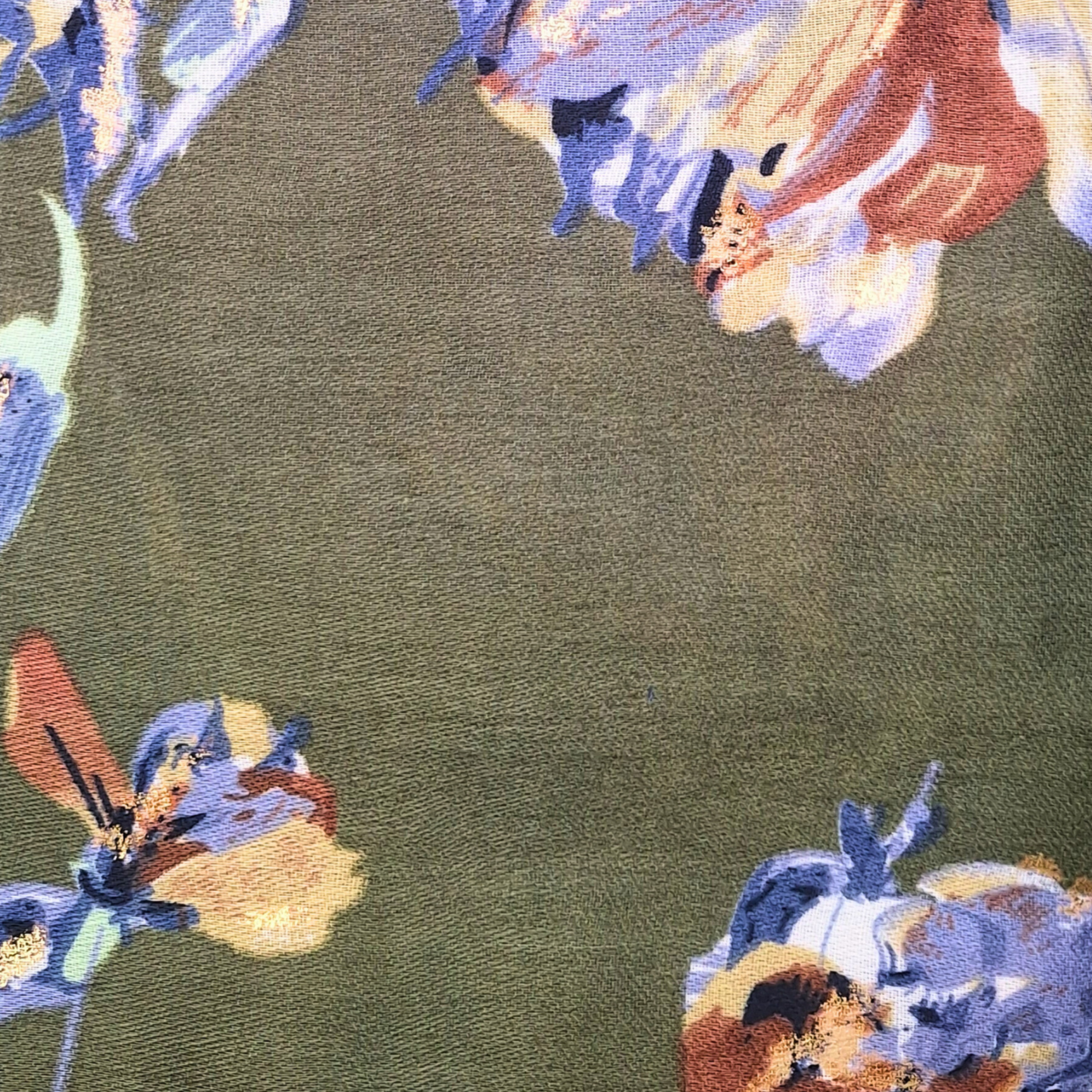 Discover the perfect gift that combines luxury and practicality. This olive green scarf features stunning gold foil accents that catch the light beautifully, creating an instantly elevated look. The expertly blended fabric, 40% cotton and 60% viscose, delivers a soft feel against your skin while maintaining breathability and durability. Versatile enough to dress up any outfit or layer effortlessly through seasons, it's the kind of timeless piece that becomes a cherished favourite. Give a gift that speaks to refined taste and thoughtful elegance.